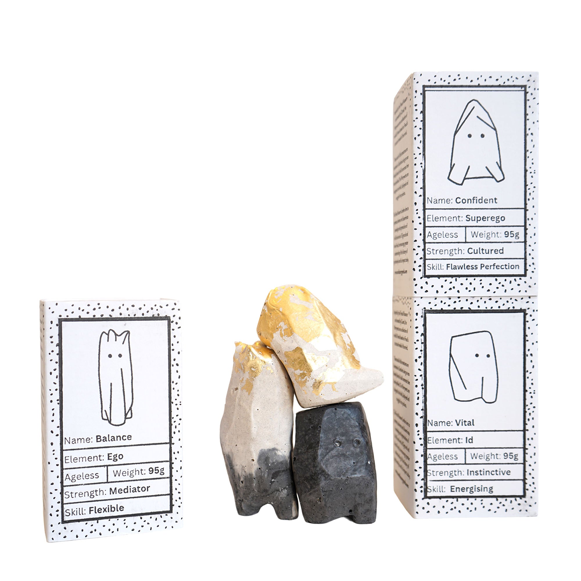 We teamed-up with artist Zoe Scott to create a collection of mindful friends based on Sigmund Freud's structural model of the mind. Read more about Zoe Scott and and about the project on our blog - Spotlight on the Creators here.