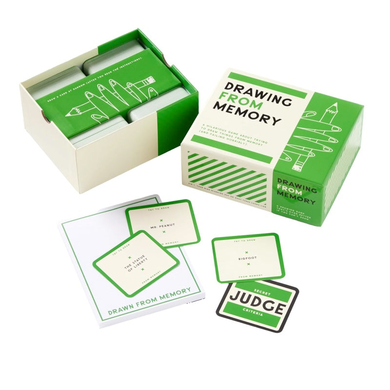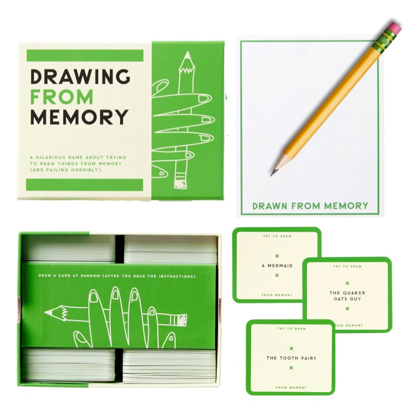 Inside you'll find a pad of paper and 500+ prompts, each featuring a wellknown character, animal or object to draw and players compete by trying their best to depict one, all from memory alone